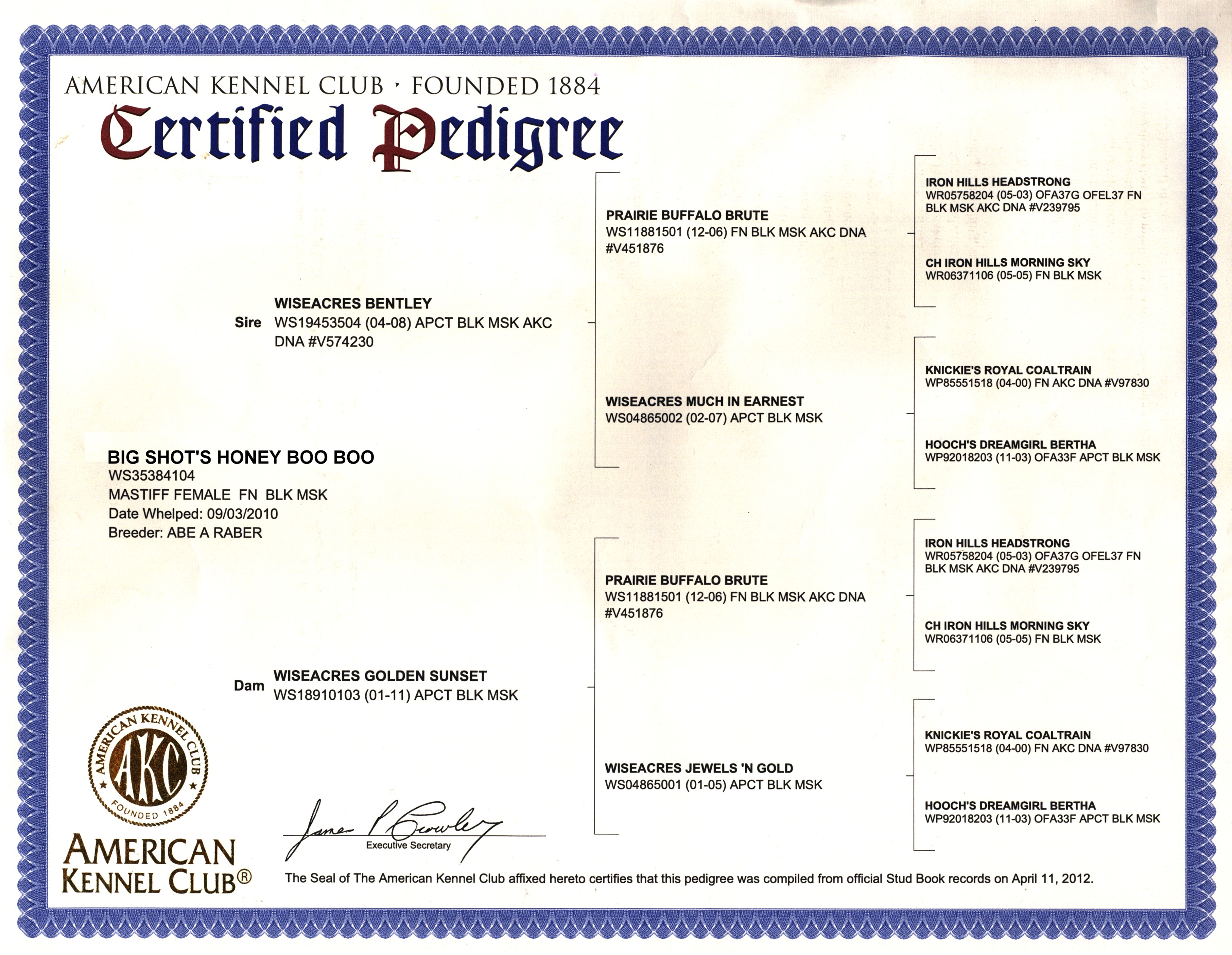 AKC BIG SHOT'S HONEY BOO BOO "HONEY" OFA GOOD